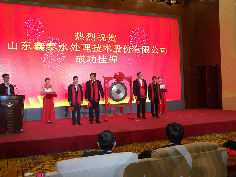 2018年11月30日,伴隨著響亮的敲鑼聲,山東鑫泰水處理技術股份有限公司在棗莊市政府.青島藍海股權交易中心掛牌儀式上正式掛牌,成為棗莊市首批藍海掛牌企業(yè)。