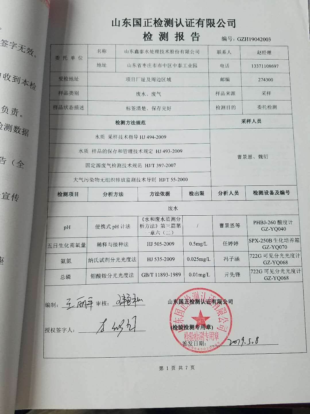 | 主要內(nèi)容 | 與山東國(guó)正檢測(cè)認(rèn)證有限公司簽訂環(huán)境檢測(cè)協(xié)議,委托第三方機(jī)構(gòu)對(duì)我公司進(jìn)行環(huán)境檢測(cè),檢測(cè)頻次、地點(diǎn)及項(xiàng)目等與環(huán)評(píng)報(bào)告要求一致。 |