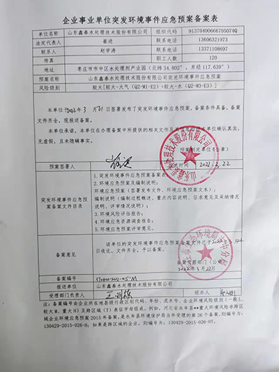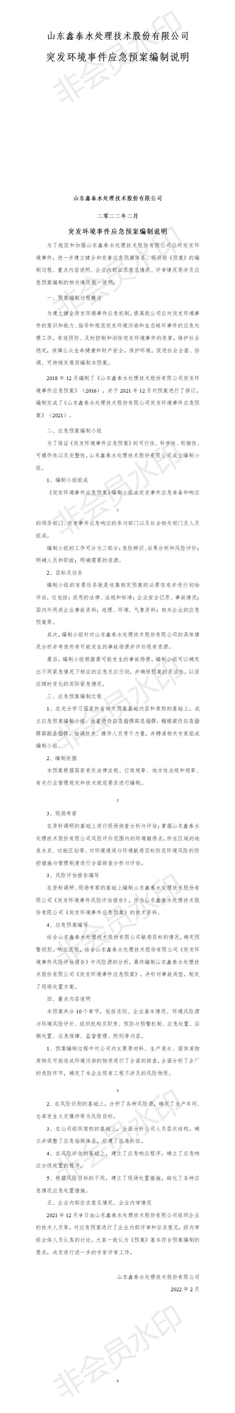 山東鑫泰水處理技術(shù)股份有限公司應(yīng)急預(yù)案